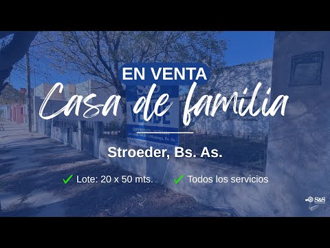 Oportunidad en Stroeder, Buenos Aires. Esta propiedad se encuentra sobre un generoso terreno de 1000 m2 con un frente de 20 metros y un fondo de 50 metros, ideal para quienes buscan espacio y tranquilidad. La casa familiar cuenta con un living comedor, cocina, baño completo, dos dormitorios y un amplio patio verde. Además, incluye un galpón/taller.<br><br>Servicios esenciales como agua corriente, gas natural y electricidad están disponibles, junto con alumbrado público y cordón cuneta. La propiedad está ubicada en una zona tranquila, ofreciendo un ambiente ideal para el desarrollo personal o familiar. <br><br>Excelente oportunidad para continuar desarrollando o disfrutar de sus amplios espacios.